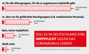 „Soll es in Deutschland eine Impfpflicht gegen das Coronavirus geben?“ haben wir unsere Genoss:innen gefragt. 187 von ihnen haben sich an der Umfrage beteiligt und das Ergebnis ist recht eindeutig.
